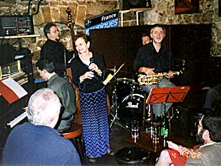 Marlene, Billy and saxophonist Claude Tissendier (right), at Le Petit Journal, with the club's boss